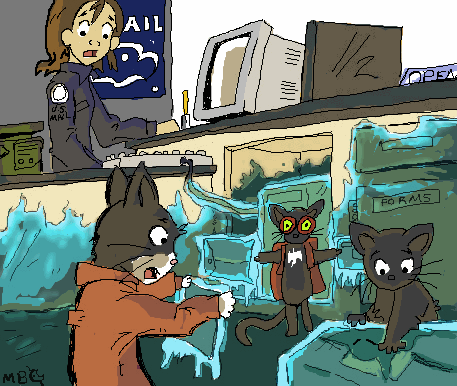 employee side, up by the counter there were stacks of letters and boxes